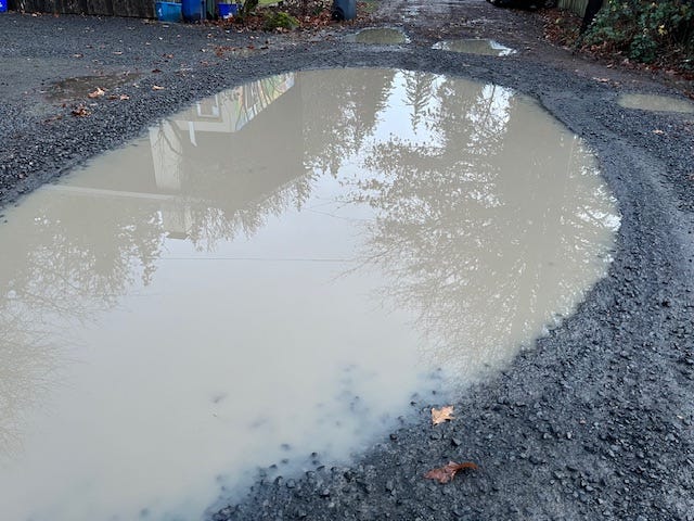 I did a mud puddle contest and I believe we have a winner and it’s only about a block away from where I live.