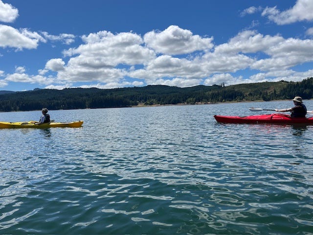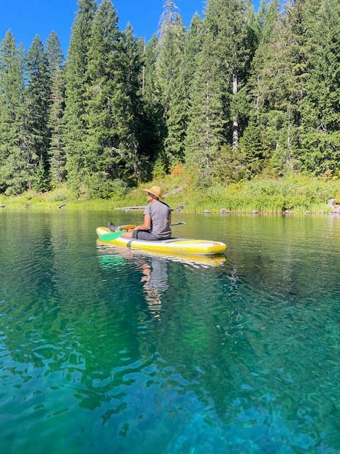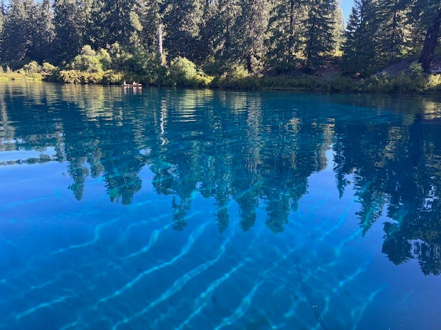 I splashed cold water on my face this morning from my kitchen sink and I thought of its source, the Mckenzie river, and this reminded me of its source, Clear lake, and I remembered being there on my paddle board next to the burbling headwaters in the rocks when a bird landed and we sat for a while together with no one else around.