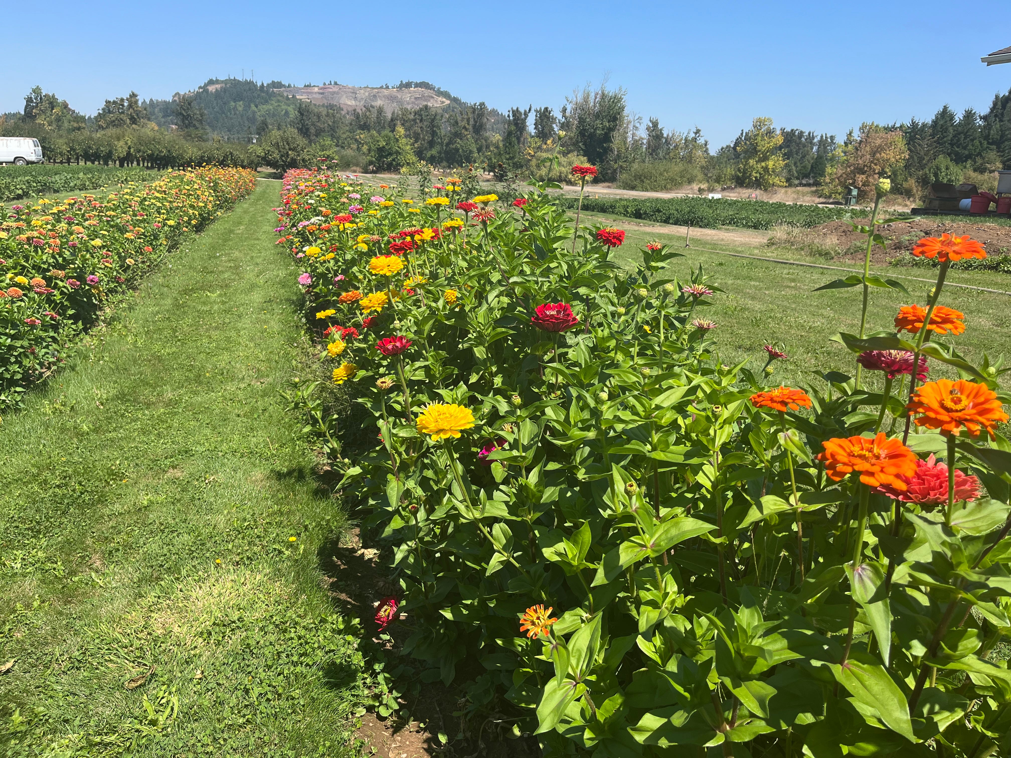 I picked zinnias again, this time same as last, only me and the rooster in the garden.